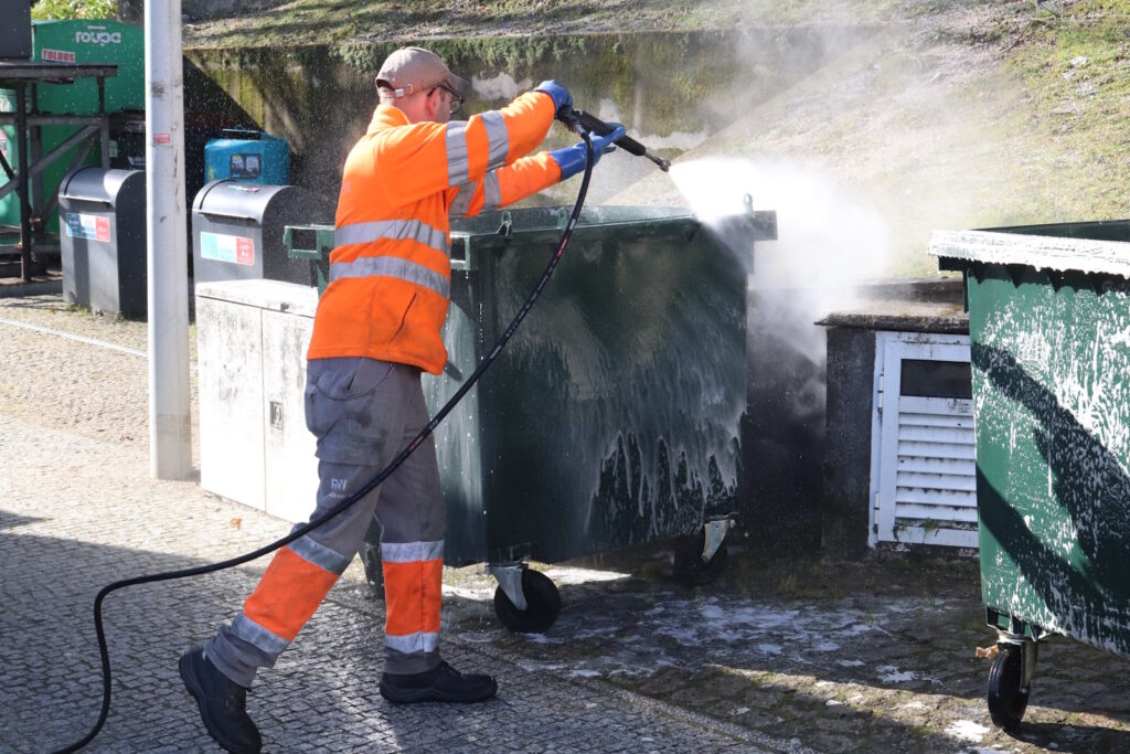 A lavagem e desinfeção são realizadas no interior e no exterior dos equipamentos, com recurso a produtos bactericidas e repelentes de insetos, assegurando melhores condições de higiene sem interferir com o normal funcionamento da recolha de lixo. Graças à eficiência do procedimento, os contentores ficam rapidamente disponíveis para utilização.