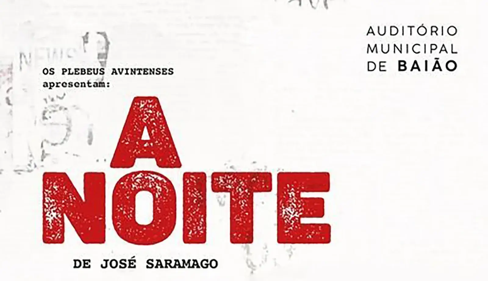 No próximo dia 24 de maio às 21H30, a não perder no auditório municipal de Baião, no âmbito das Comemorações dos 50 anos de democracia em Portugal, a peça de teatro “A Noite”.