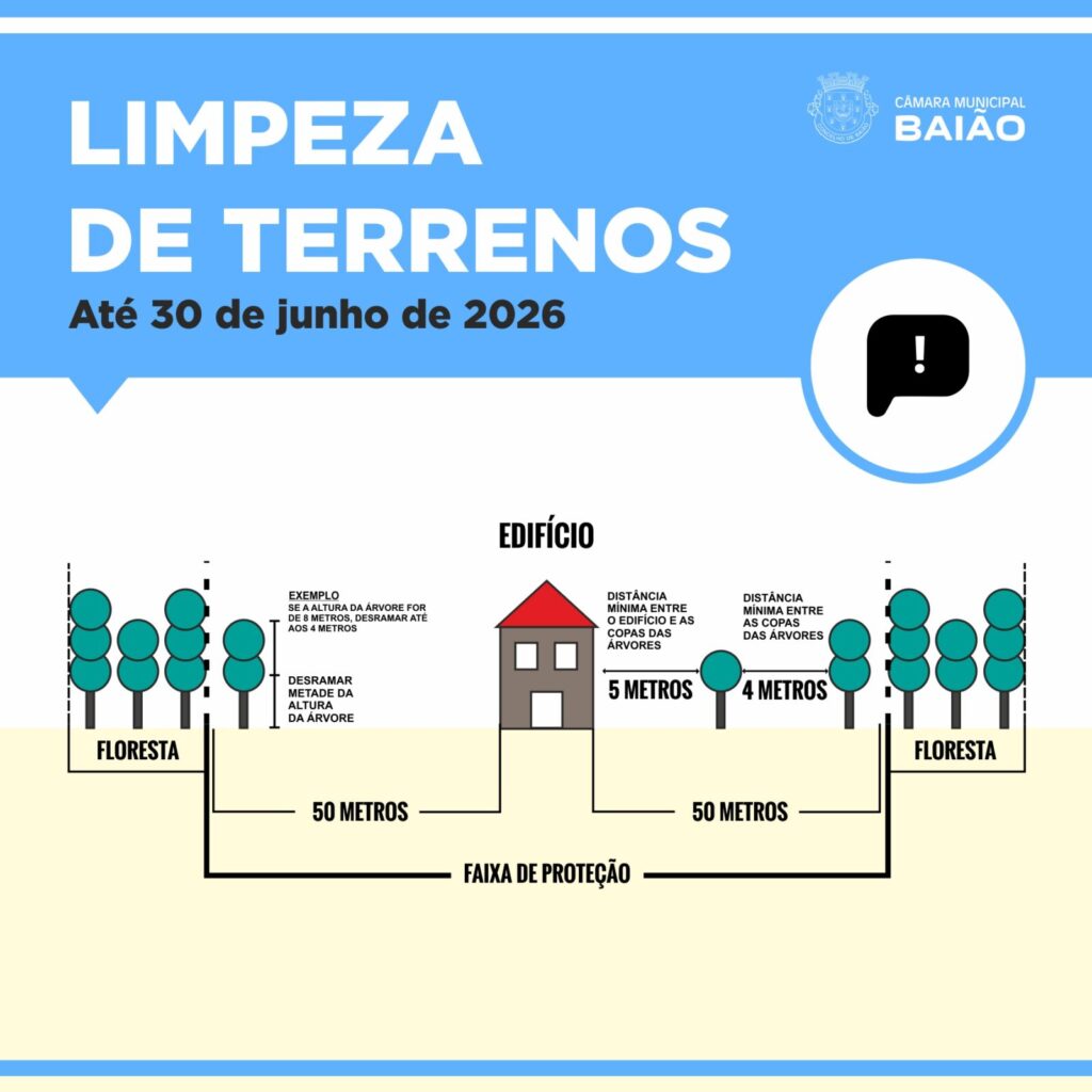 Segundo esse diploma legal (e entendendo a que, Concelho de Baião, se encontra na lista de Municípios que integram de declaração de Situação de Calamidade resultantes das recentes tempestades), os proprietários, arrendatários, usufrutuários e responsáveis por terrenos junto a edifícios utilizados para habitação ou para atividades económicas inseridos em espaços rurais devem proceder à sua limpeza até 30 de junho.