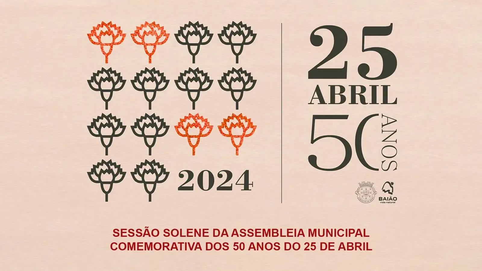 A Sessão Solene da Assembleia Municipal Comemorativa dos 50 anos do 25 de Abril, com início às 15h30 no Salão Nobre dos Paços